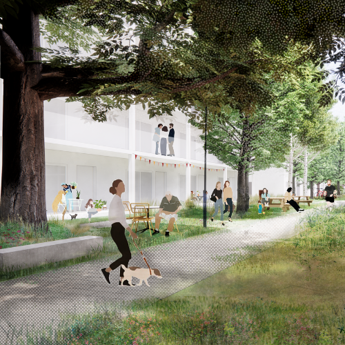 Waar eerdere plannen vooral op densiteit focusten, kiezen wij bewust voor een buurtgerichte aanpak. Participatie, publieke ruimte en vergroening staan centraal. De nieuwe wijk — Vonk — wordt een mix van appartementen en eengezinswoningen, verweven met pleinen, wandelpaden en een buurtbos.
